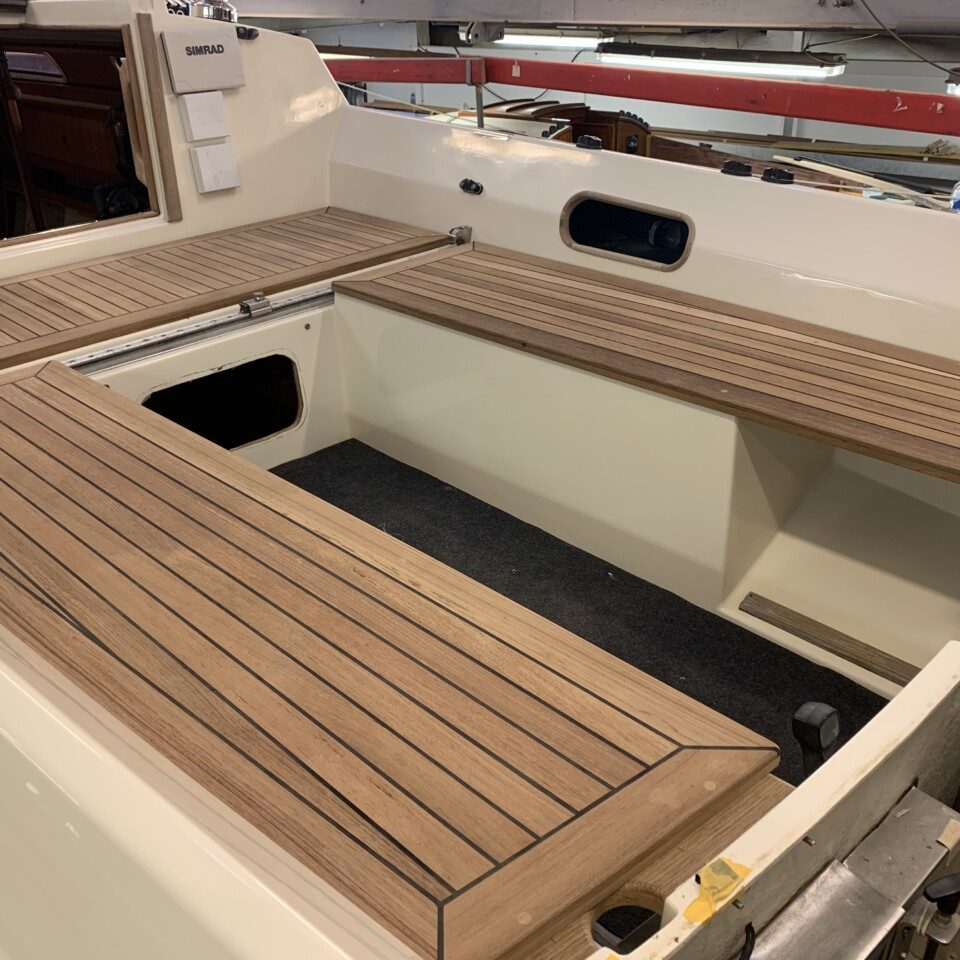 Karl Emil (lærling) har oparbejdet nyt teak cockpit.